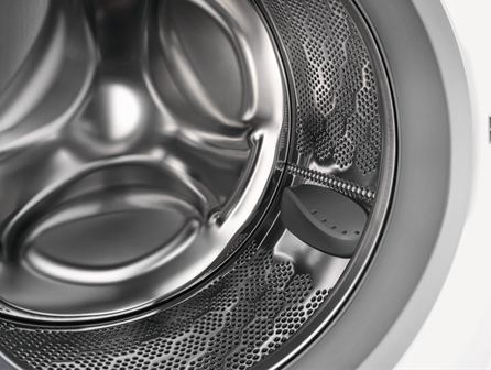 Alle vores maskiner har vores blide, specialdesignede ProTex tromle. Vasketøjet løftes og beskyttes af bløde vandstråler. Tromlen har ekstra huller, så tøjet strækker sig mindre og deres form bevares under centrifugering.
