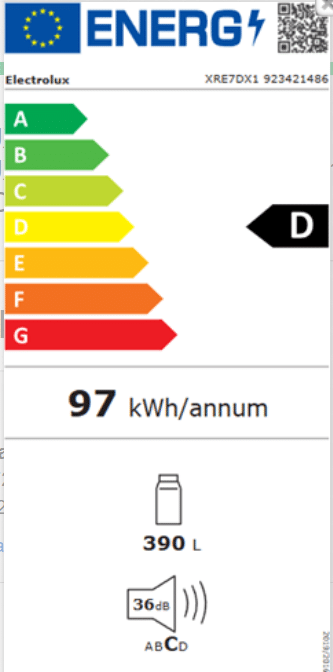 XRE7DX1 er klassificeret i energiklasse D og har et lavt lydniveau omkring 36 dB(A), så det arbejder diskret i køkkenet. Elektroniske betjeningsknapper gør temperaturstyringen enkel, døralarmen husker dig på at lukke, og kompressoren leveres med 10 års garanti for ekstra tryghed.
