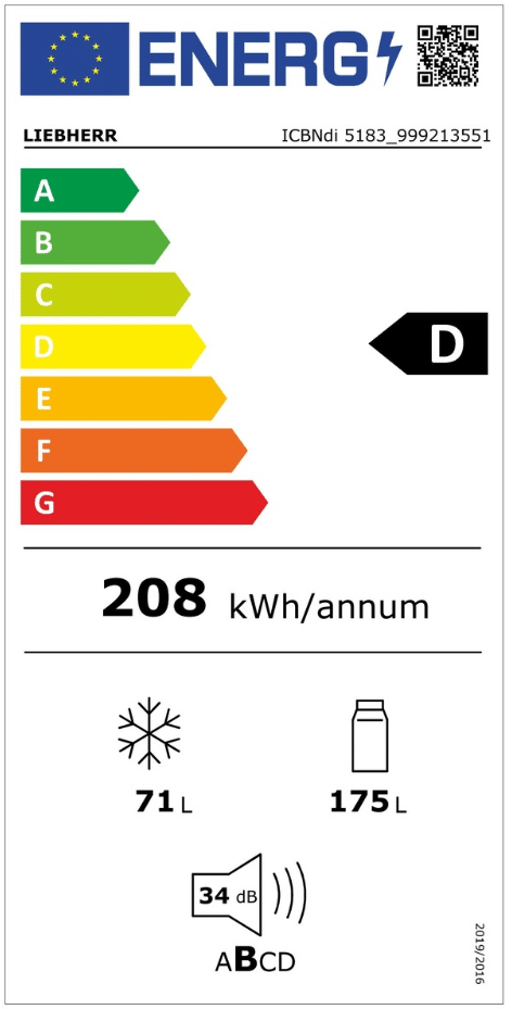 | Årligt energiforbrug: | 208 kWh/år |