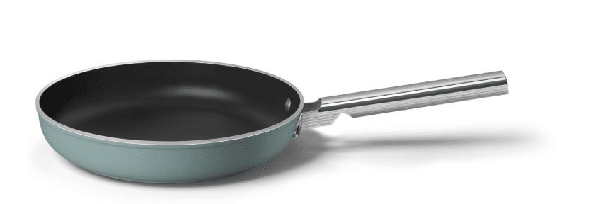 SMEG FPF2802EGM er en 28 cm stegepande i den elegante Emerald Green-matte farve, der bringer brandets ikoniske 50’er-stil ind i hverdagskøkkenet. Udtrykket er rent og tidløst, og den solide konstruktion gør panden velegnet til både hurtige hverdagsmåltider og mere ambitiøse retter.