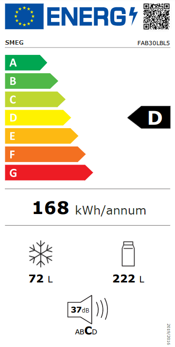 | Årligt energiforbrug: | 168 kWh/år |