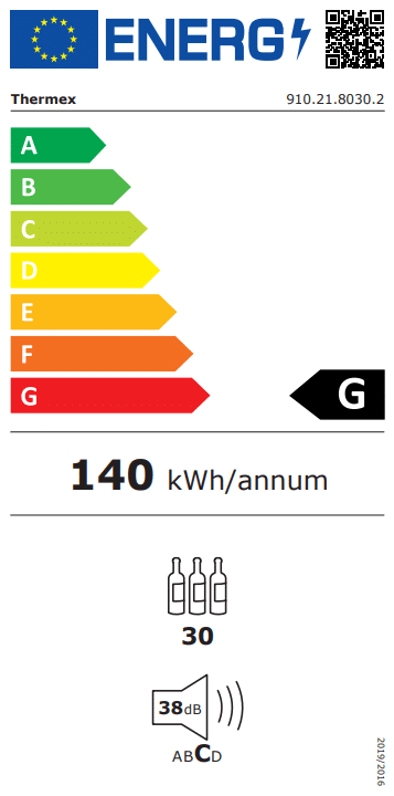 Thermex model 910.21.8030.2 er et indbygget vinkøleskab med plads til 30 flasker, designet til at opbevare din vin ved optimal temperatur og fugtighed. Dette vinkøleskab sikrer, at dine vine altid er klar til servering under de bedste betingelser.