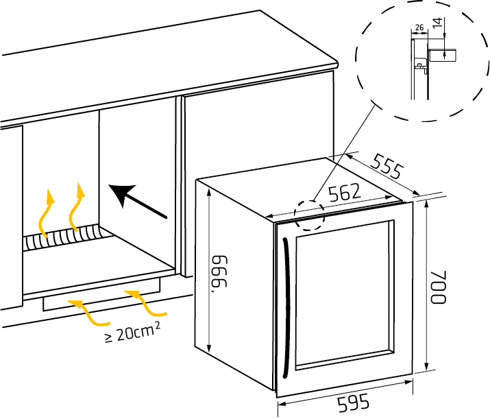 Med præcis temperaturkontrol og et stilfuldt design er dette vinkøleskab ideelt til vinkendere, der ønsker at opbevare deres samling korrekt og præsentere den på en elegant måde. Det indbyggede design gør det nemt at integrere køleskabet i dit køkken eller din vinkælder.